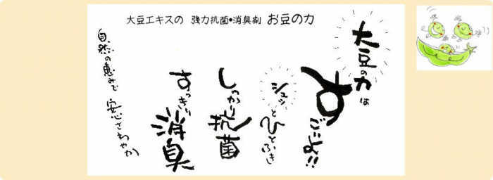 大豆を中心として米・麦など穀物エキスを主成分とした安心な抗菌・消臭剤。無